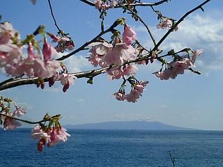 桜の向こうの青い海がキレイです